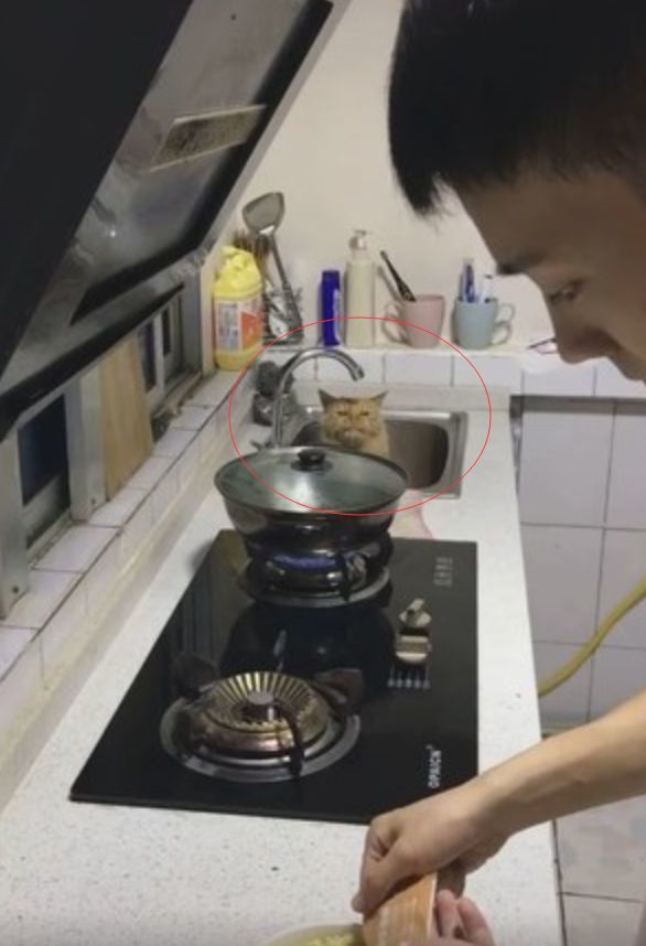 宠主正在泡泡面 水槽探出一张 哀怨 的小脸 太萌了